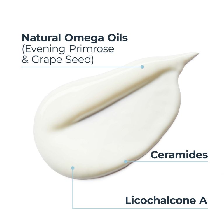 Licochalcone A, Ceramides, Grape Seed Oil, Aqua, Glycerin, Paraffinum Liquidum, Vitis Vinifera Seed Oil, Oenothera Biennis Oil, Octyldodecanol, PEG-7 Hydrogenated Castor Oil, Dimethicone, Glycyrrhiza Inflata Root Extract, Ceramide NP, Tocopherol, Ozokerite, Sorbitan Isostearate, PEG-2 Hydrogenated Castor Oil, Hydrogenated Castor Oil, Ascorbyl Palmitate, Citric Acid, Sodium Citrate, Magnesium Sulfate, BHT, 1,2-Hexanediol, Phenoxyethanol, Potassium Sorbate.