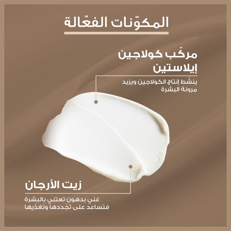 حمض الهيالورونيك، ثياميدول، زيت الأرغان، ماء، جلسرين، كحول السيتاريل، كحول السيتاريل، بوتيلين جلايكول، كابريليك/ كابريك ثلاثي الجلسريد، بانثينول أو ديكسبانثينول، جليسريل ستيرات سيترات، فوسفات النشا هيدروكسي بروبيل النشا، زيت نواة الأرغان سبينوزا، كوكو-جليسريدات مهدرجة، زبدة بوتيروزبيرموم باركي, هيالورونات الصوديوم، مستخلص فاكهة أركتيوم لابا، كرياتين، 1-ميثيل هيدانتوين-2-إيميد، إيزوبوتيلاميدو ثيازوليل ريزورسينول، بانتولاكتون، توكوفيرول، نشا التابيوكوفيرول، صمغ التابيوكا، صمغ الزانثان، هيدروكسيد الصوديوم، حمض الستريك، ديميثيكون، ثنائي ميثيكون، إيدتا ثلاثي الصوديوم، كابريليل جليكول، 1،2-هيكسانديول، فينوكسي إيثانول، عطر.